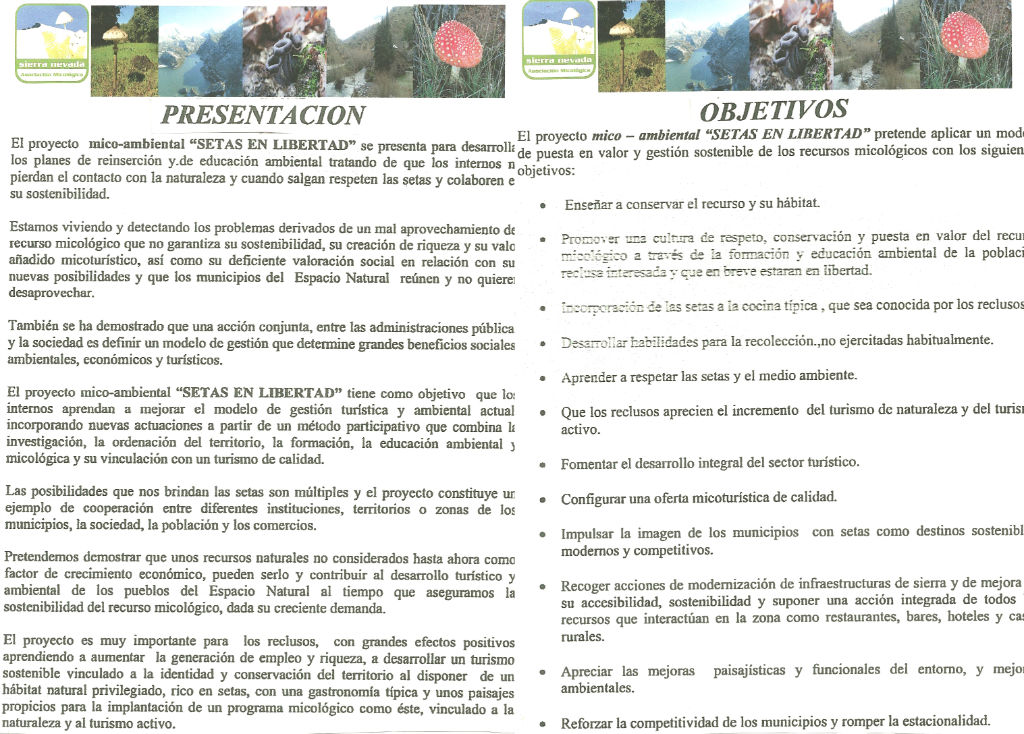 La Asociación Micológica Sierra Nevada, en colaboración con el Área Sociocultural y Deportiva del Centro Penitenciario de Albolote organiza unas jornadas micológicas entre los días 13 y 18 de diciembre de 2010, en su afán de divulgar el conocimiento de las setas de nuestras comarcas.