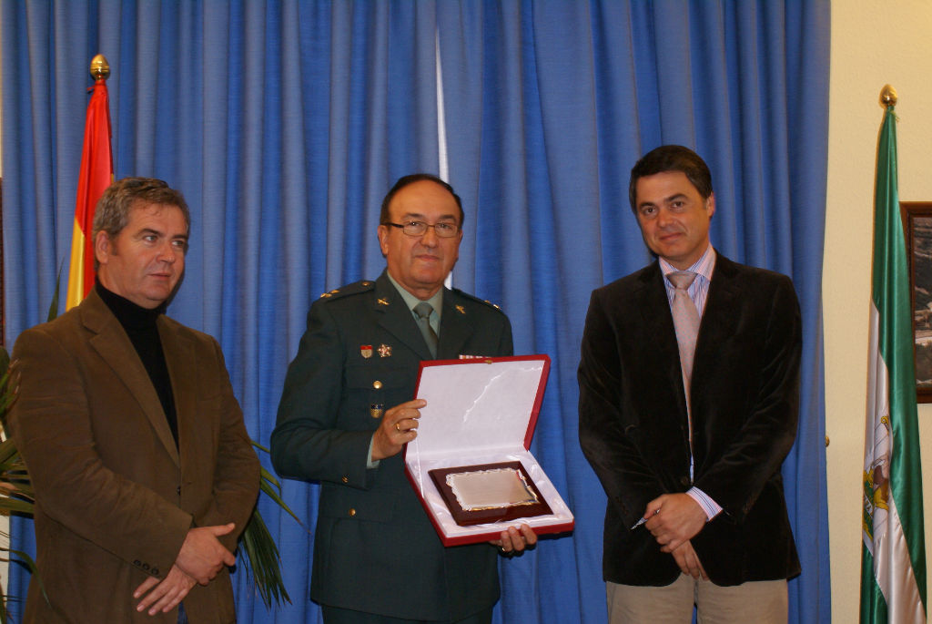 El alcalde, Carlos Rojas, ha hecho entrega al ex capitán de la Guardia Civil, Antonio Puentedura, de una placa en la que la ciudad reconoce su gran aportación para garantizar la seguridad de toda la Comarca.