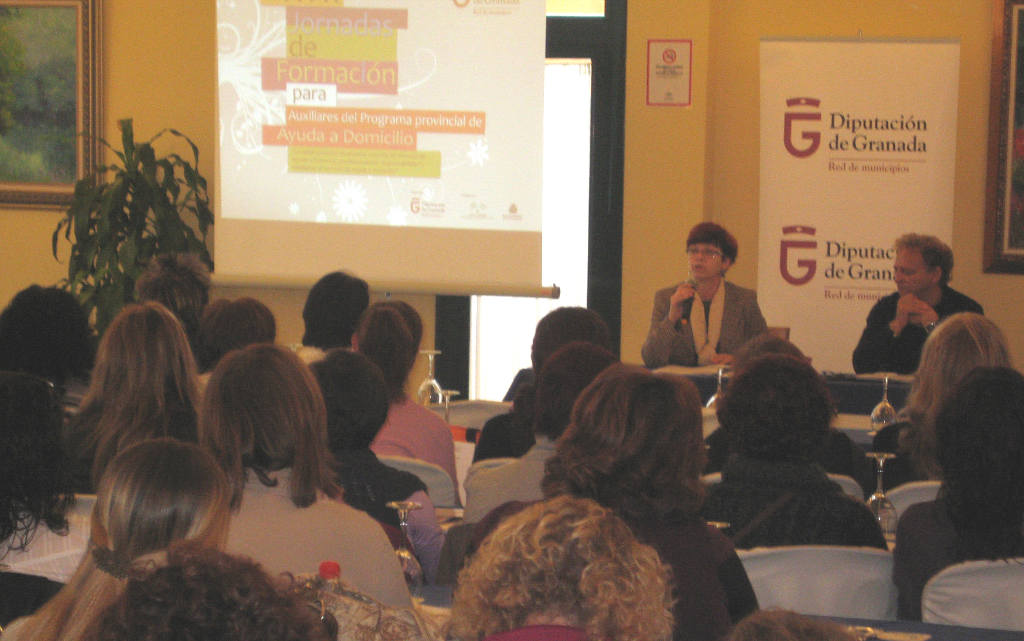 Las personas asistentes a las XVII Jornadas de Formación Técnica para Auxiliares del Programa Provincial de Ayuda a Domicilio están estudiando aspectos como la regulación y la organización del Servicio de Ayuda a Domicilio de la Diputación de Granada, la atención en la rehabilitación social de las personas con trastornos psíquicos y, en tercer lugar, los cuidados básicos de salud a personas dependientes.