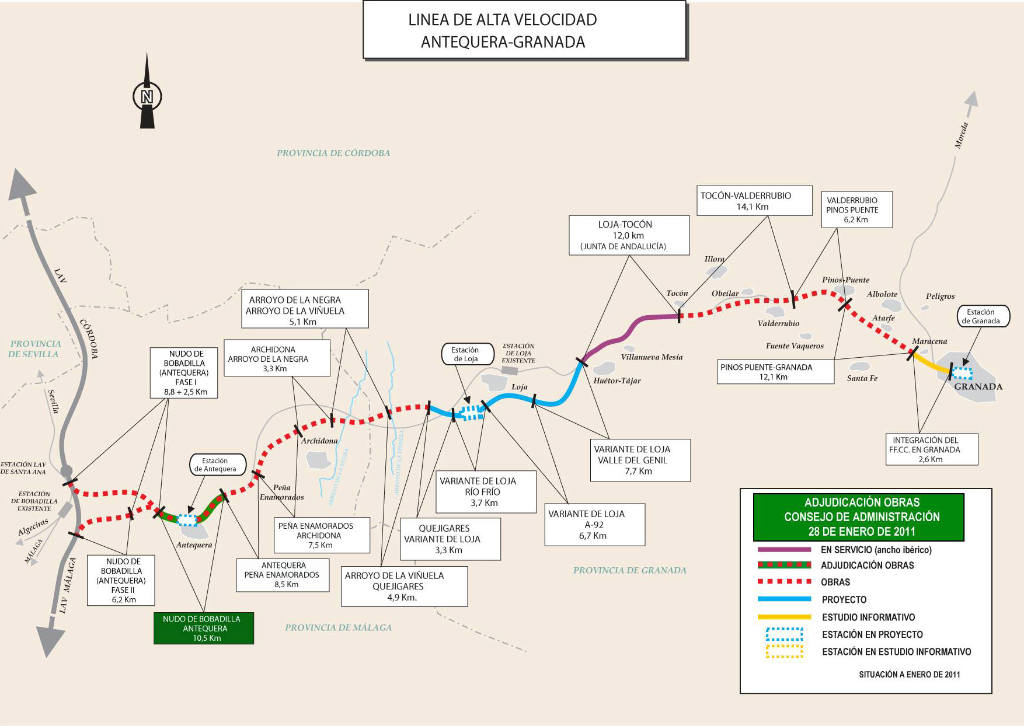 Esta adjudicación se une a las ya realizadas de los otros tres tramos que componen el trayecto entre Antequera y Peña de los Enamorados, de 36,5 km de longitud: Nudo de Bobadilla Fase I (11,3 km), Nudo de Bobadilla Fase II (6,2 km) y Antequera-Peña de los Enamorados (8,5 km).
