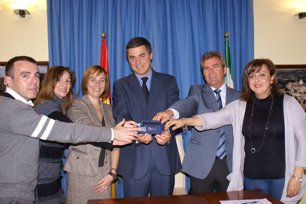 El alcalde de Motril, Carlos Rojas, ha sido el encargado de presentar este nuevo servicio de Custodia de llaves. Durante la rueda de prensa ha estado arropado por los responsables de Acción Social y Seguridad Ciudadana, Ángeles López Cano y José García Fuentes, además de la delegada de Andalucía de la empresa Televida, Marian Rodríguez.
