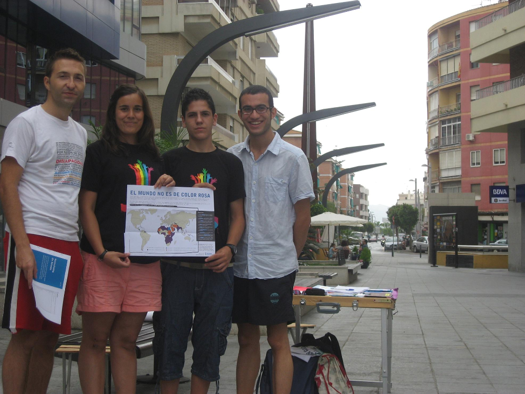 Por este motivo COLEGAS instalaba durante el fin de semana una mesa informativa en la céntrica plaza de la Aurora de Motril. La acción, que contaba con el apoyo del concejal de juventud y cultura, Nicolás Navarro, consistió en la recogida de firmas para apoyar la liberación de Jean-Claude Roger Mbede, condenado recientemente en Camerún a 3 años de prisión por «homosexualidad» y «tentativa de homosexualidad». Los voluntarios de COLEGAS invitaron a los viandantes y dependientes de los negocios de la plaza a apoyar esta campaña de Amnistía Internacional.