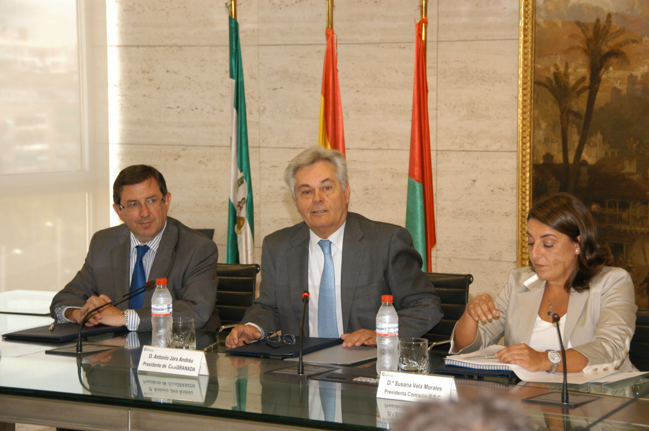 El informe de RSC 2010, que ha vuelto a obtener la máxima calificación A+ otorgada por el GRI, ha sido presentado esta mañana en rueda de prensa por el presidente de CajaGRANADA, Antonio Jara, acompañado por la presidenta de la Comisión de RSC, Susana Vela, y el vicepresidente primero, Luis González. La memoria revela una entidad más comprometida con la sociedad y con el medio ambiente.
