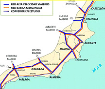 Respecto a la opción mediterránea para dicho corredor de mercancías, recordemos que la Plataforma por Andalucía Oriental defendió entonces el planteamiento del lobby Ferrmed, es decir una bifurcación en Lorca de cual partiesen dos itinerarios: uno por la comarca del Almanzora hasta Guadix, Baza, Granada, Antequera y Algeciras, y otro por la ciudad de Almería, Motril y Málaga hasta llegar a Algeciras.