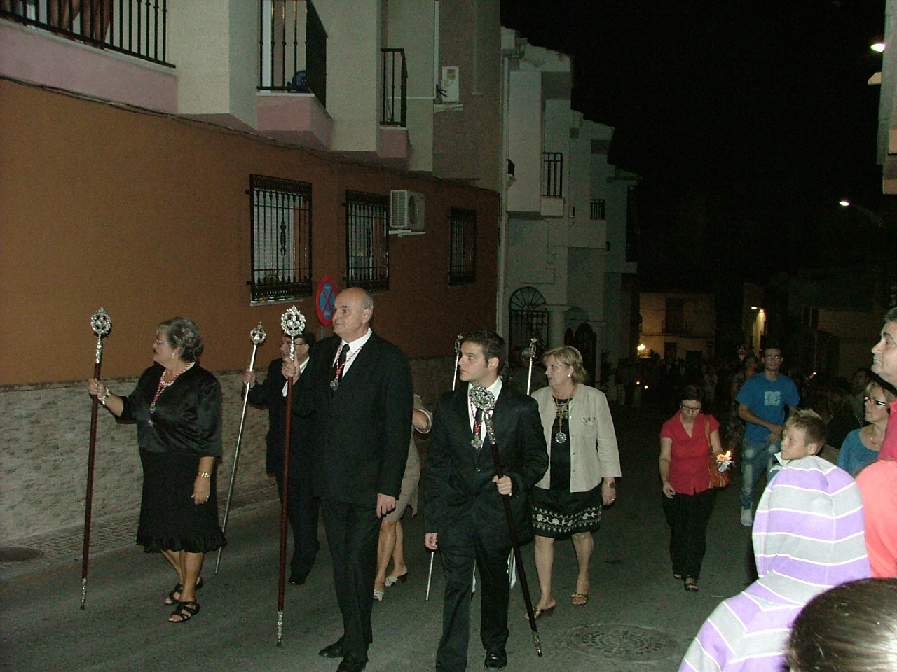 Concluida la fiesta el barrio de Capuchinos tomaba el relevo sin apenas descanso. Previamente, el día 8 de octubre, la hermandad de la Divina Pastora había programado el tradicional pregón de exaltación a su titular que tuvo lugar a las 20,30 hrs y quedó a cargo del vecino Carlos Torcuato de la Flor. Del 10 al 15 de octubre tenía lugar el septenario, mientras que la ofrenda floral quedaba fijada para el día 14 a las 18 hrs. El domingo 16, a las 12 hrs, el párroco y consiliario de la hermandad, D. Diego Molina Quesada impartía en la iglesia de Capuchinos la solemne misa en honor de la Virgen y por la tarde daba comienzo la procesión de gloria, que iniciaba su marcha a las 19 hrs. y era anunciada a los vecinos con una sonora salva de cohetes. Tras los preparativos del cortejo el trono de la Divina Pastora traspasaba el umbral de su pórtico a los sones del himno nacional. Antes de continuar el itinerario la imagen de la Virgen fue llevada hasta la lindante residencia de ancianos San Luis para que la titular reconfortase en su fe a los residentes que esperaban este momento con especial significación. La escena fue bastante gratificante, pues con lágrimas en los ojos muchos de ellos prorrumpieron en vivas y vítores a la Virgen. Tras retomar la marcha el coro “Al compás del camino” dedicó a la titular unas composiciones musicales entre las que hay que destacar “Aires de Triana” y “Encarnación Coronada”. El sequito procesional aparecía abierto por la cruz parroquial y ciriales, que era seguido por una larga fila de fieles devotos entre los que se entremezclaba la representación de cofradías y hermandades de la ciudad que expresamente habían sido invitadas al acto, entre ellas la hermandad de la Divina Pastora de Gójar. Seguidamente el estandarte pastoreño daba paso al trono de la Virgen, junto al que se situaba la junta directiva de la hermandad, la representación municipal y la Agrupación musical San Sebastián de Padul. El itinerario marcado por la hermandad partía de la iglesia de Capuchinos y continuaba por Rambla de Capuchinos, Piedrabuena, Buen Pastor, Inmaculada Concepción, San Miguel, Ecuador, Baltasar Gracian, Barranco de la Higuera, Carretas, Parra Alta y Rambla de Capuchinos y de aquí a su templo. El momento estelar de la misma se lograda a la altura de la calle Parra ya que desde un balcón la Patrona del barrio era gratificada con una persistente lluvia de pétalos de flor a la vez que los vivas y vítores no cesaban de entonarse. En este mismo lugar se realizaba una “levantá” dedicaba a varias personas del barrio mientras que el coro “Al compás del camino” interpretaba varias canciones de corte cofrade. Finalmente, en torno a las 23,30 hrs, el trono de la Virgen cruzaba el dintel de la iglesia dando fin a la procesión a la vez que se hacía escuchar con fuerza el himno nacional.