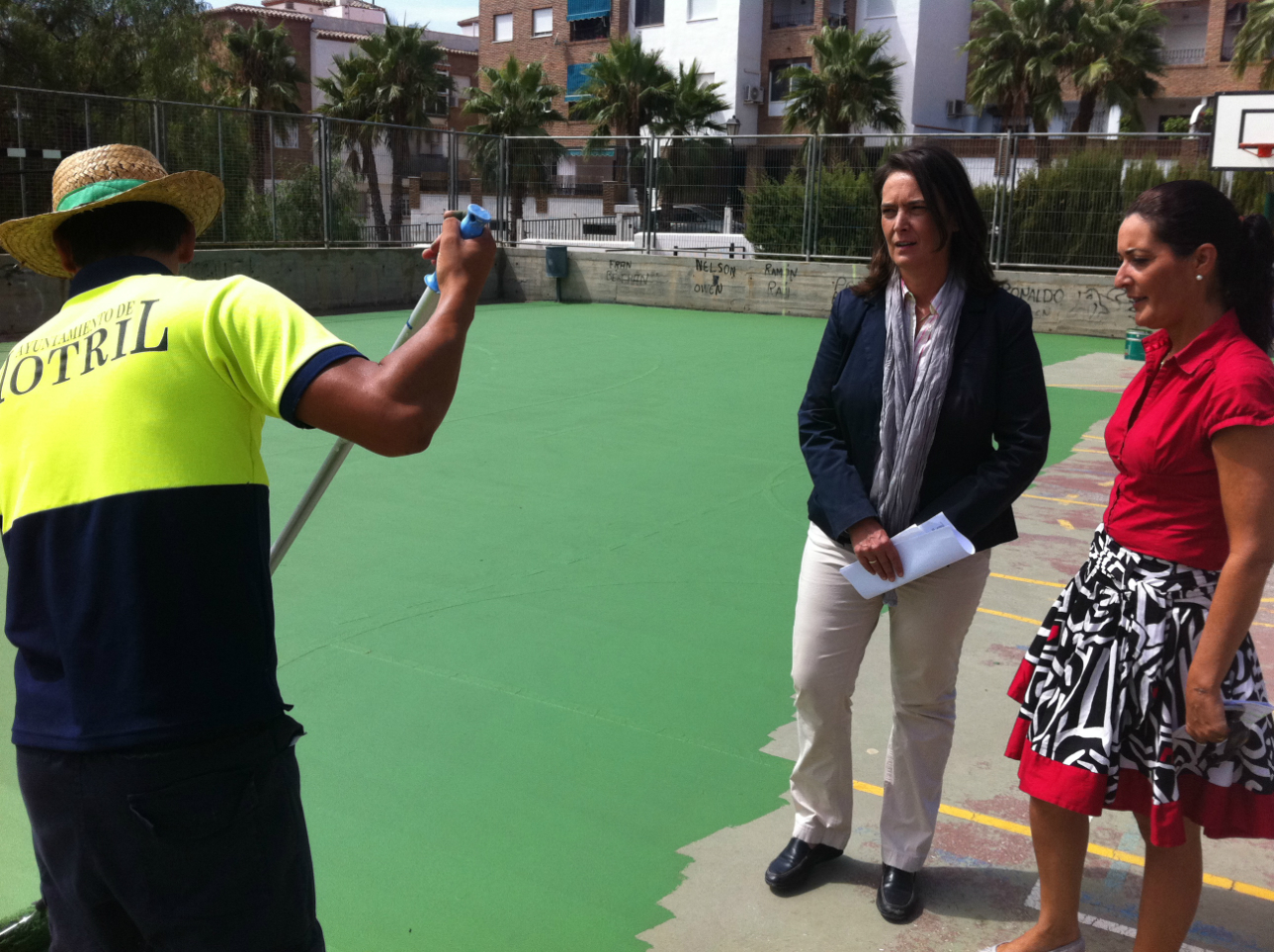 La alcaldesa de Motril, Luisa García Chamorro, acompañada por la concejal de Educación del Ayuntamiento de Motril, Elena Vallejo, ha constatado los últimos trabajos de mantenimiento que el Consistorio está llevando en los centros escolares del término municipal de cara al nuevo curso escolar, que dará comienzo el próximo lunes.