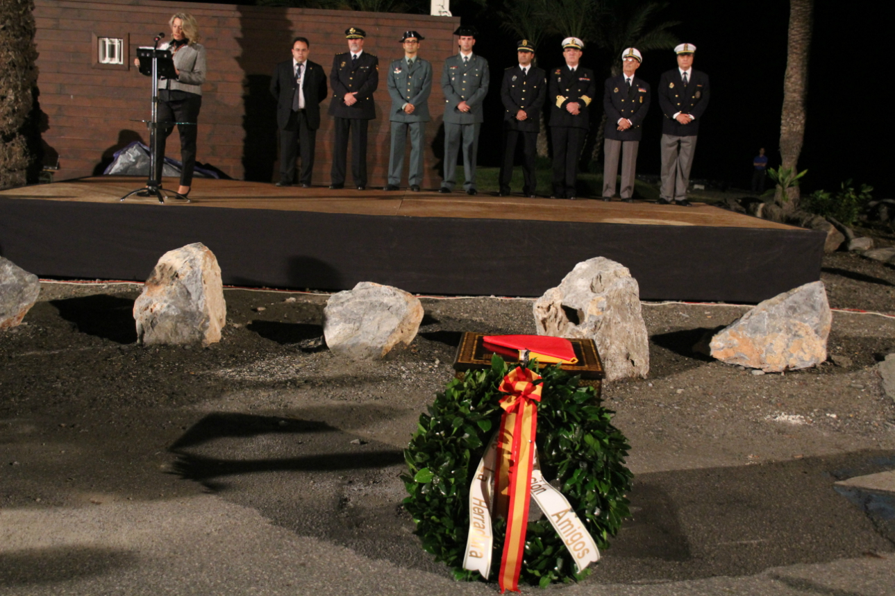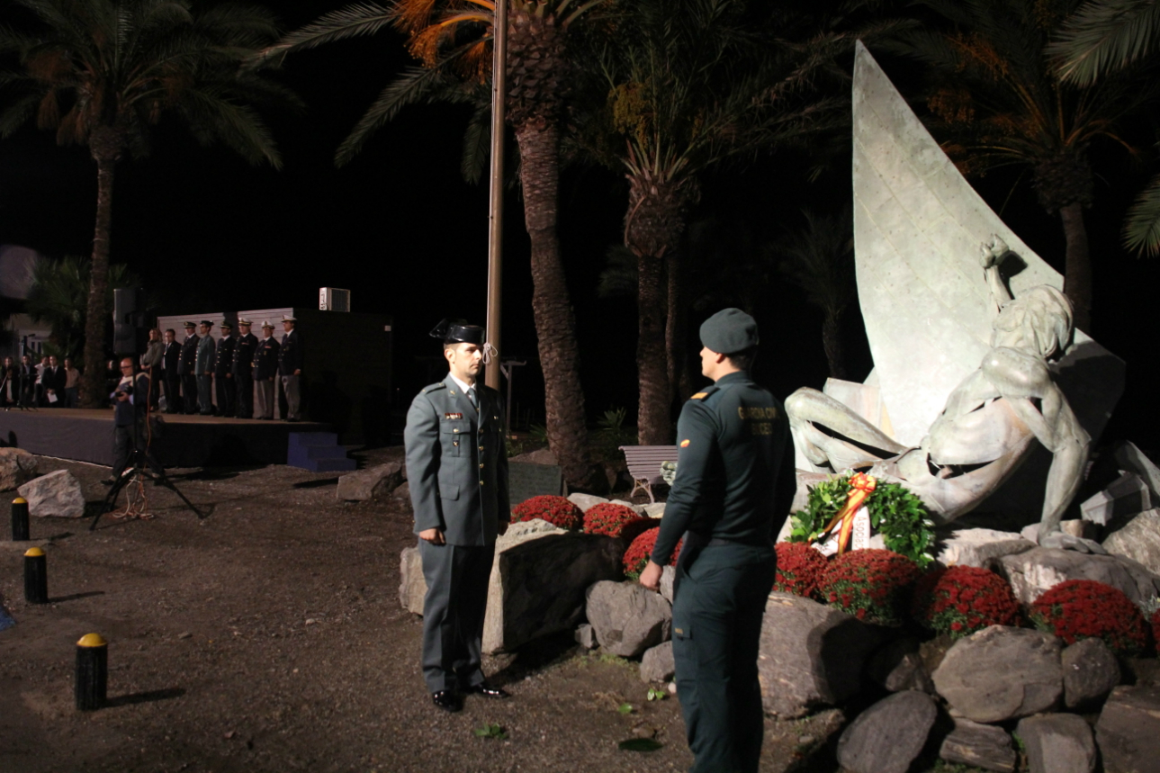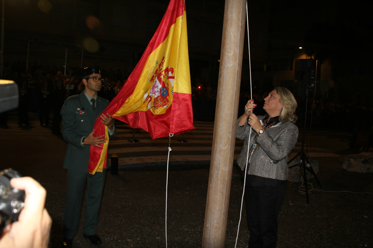 Tras las intervenciones, la alcaldesa, Trinidad Herrera y el capitán de la Guardia Civil, Tomás García, izaron la bandera de España en recuerdo de las víctimas, al tiempo que la Banda de Música Municipal interpretaba el Himno Nacional.
