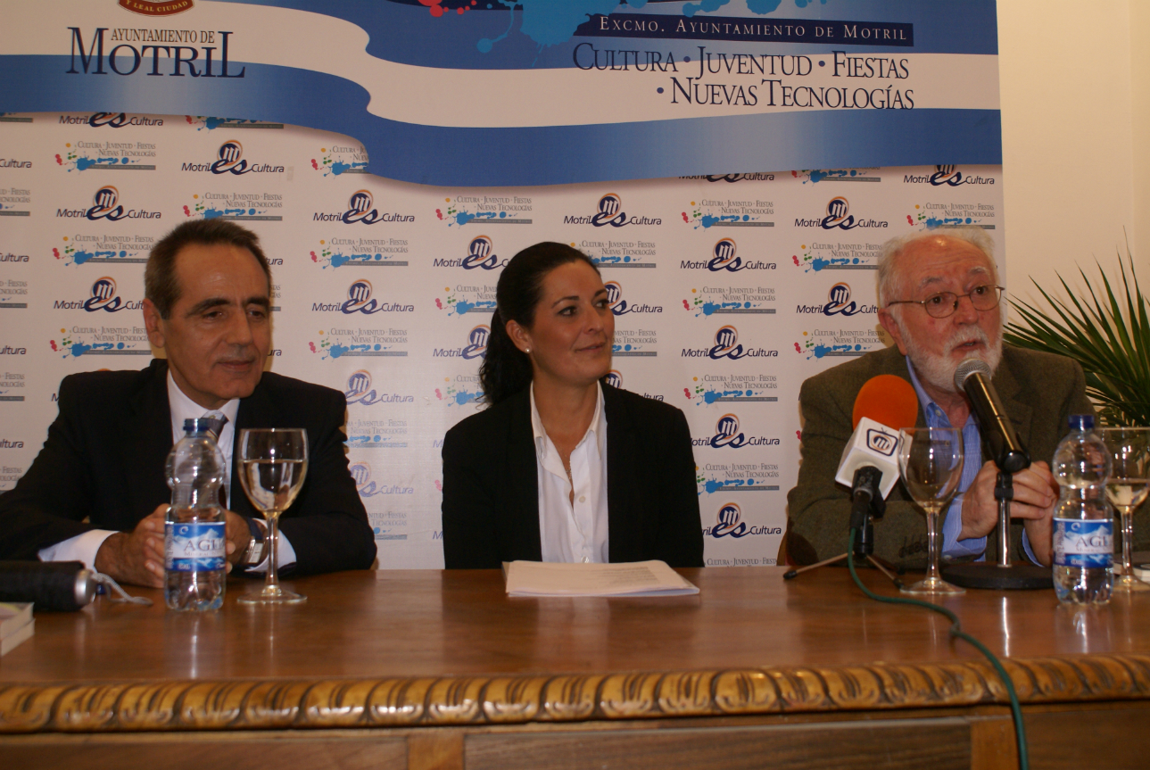 La concejala de Cultura del Ayuntamiento de Motril, Elena Vallejo, presidió el acto de presentación del libro ‘El chico de la estrella’, del poeta José Lupiánez, flanqueda por el mismo autor y José Luis Barragán, encargado de presentar la obra al numeroso público congregado en la Casa Condesa de Torre Isabel.