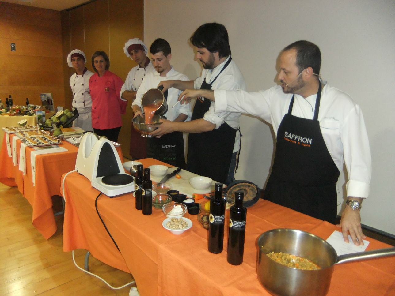 El encuentro ha acogido también una experiencia de cocina en vivo a cargo del restaurante Saffron Gastrobar y los restauradores David Reyes y Gregorio García, y la Escuela de Hostelería de Salobreña. Esta demostración gastronómica ha consistido en la preparación de varias recetas elaboradas con frutas y hortalizas de nuestra tierra con el sabor fundamental, del aceite de oliva granadino de los Montes de Granada.