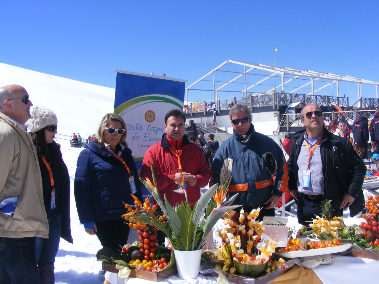 El presidente de la Mancomunidad de Municipios de la Costa Tropical, José García Fuentes, los alcaldes de Almuñécar y Salobreña, Trinidad Herrera Lorente y Gonzalo Fernández Pulido, han participado, esta mañana, en la degustación de productos de la Costa Tropical, durante la final del Campeonato Mundial de Freestyle y Snowboard Sierra Nevada 2013. La consejera delegada de Cetursa, María José López, ha acompañado a la comitiva costera.
