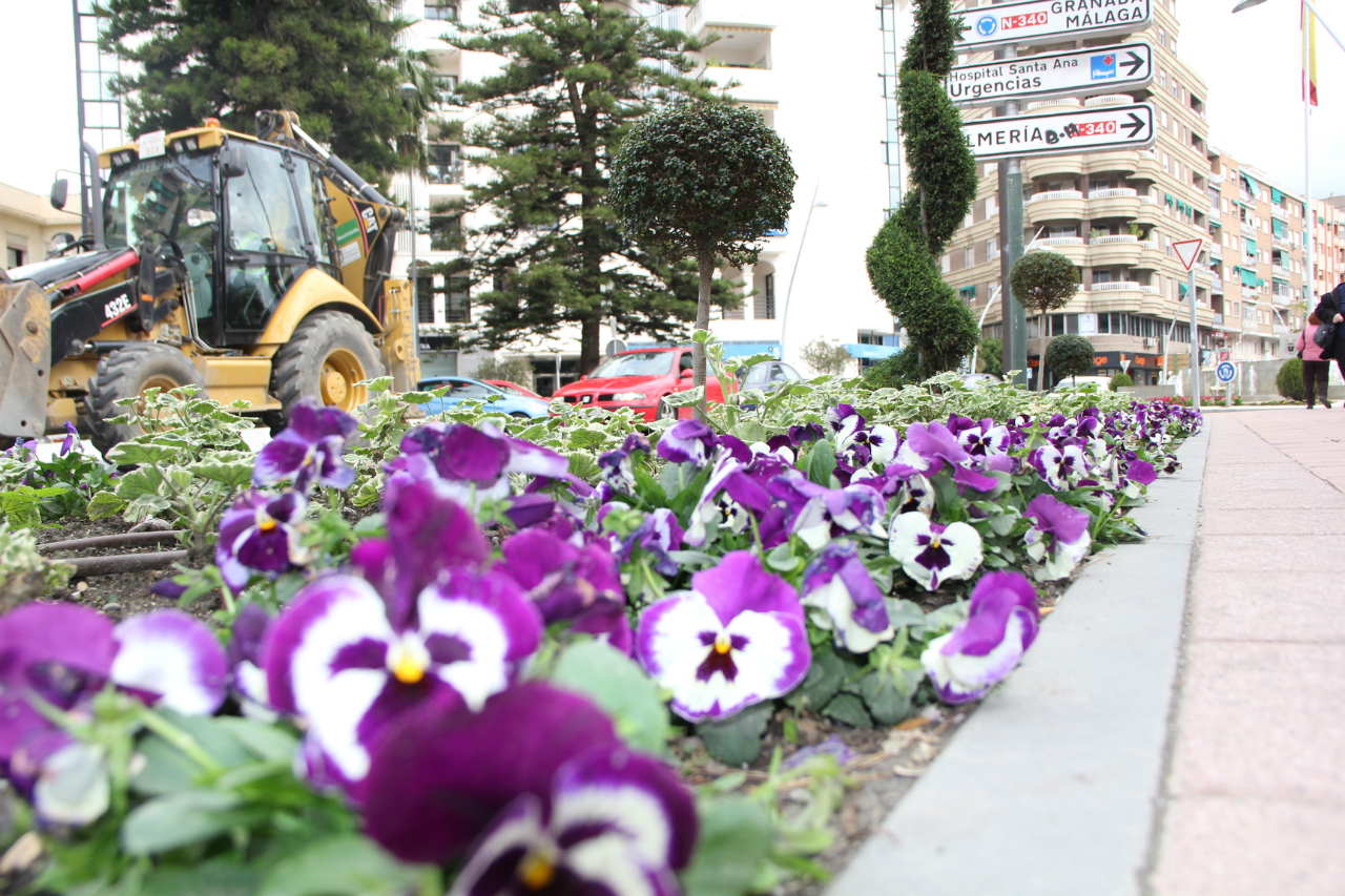Asimismo Navarro ha indicado que ya se han colocado flores en el pie del cerro del Santuario, calle Cuevas, calle Nueva y continuarán los trabajos con la reposición de plantas en el resto de accesos a Motril y el área del Centro Comercial Abierto, donde también se procederá al podado de las palmeras cubanas que lucen en los maceteros.