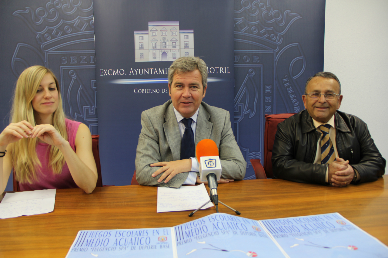 El teniente de alcalde de Deportes del Ayuntamiento de Motril, José García Fuentes, junto con Paula Spa,  coordinadora del III Premio Fulgencio Spa, así como el presidente del Real Club Náutico de Motril, Antonio Gutiérrez, han informado sobre la celebración de la final de los III Juegos Escolares en el medio acuático, que tendrá lugar este sábado, 27 de abril, entre las 10:30 y las 13:00 horas en la piscina municipal.