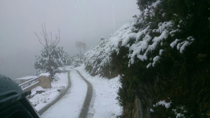La nevada se ha hecho notar desde la misma entrada al complejo, situado a unos 800 metros de altitud hasta la cota más alta, por encima del bar restaurante, que marca los 1200 metros.