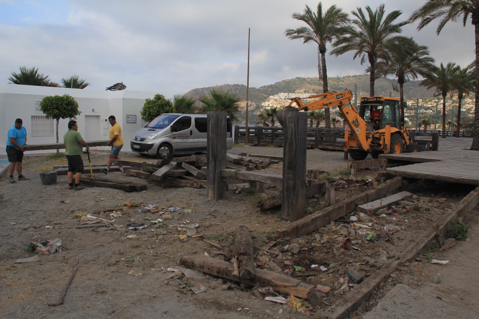 Los vecinos de La Herradura se han despertado hoy viendo cumplida una de las demandas más reiteradas de los últimos años y que no era otra que el desmontaje de las maderas de la plaza Las Palmeras, o también conocida
