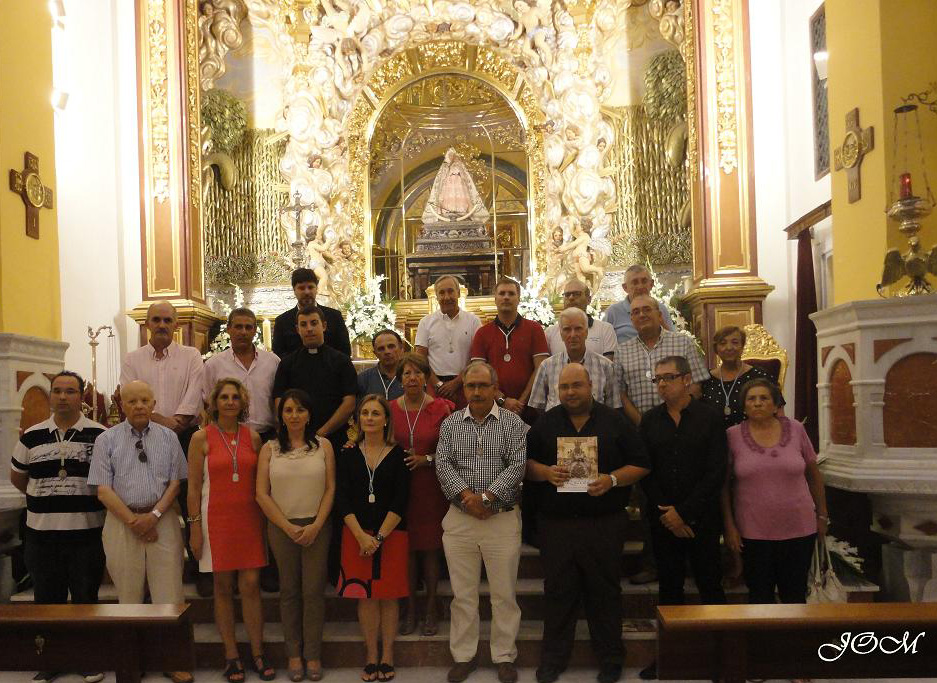 Para finalizar solo resta decir que autores y miembros de la junta de gobierno de la hermandad posaron para la posteridad en el altar de la Virgen, a la par que departían con autoridades religiosas y personas presentes sobre distintas particularidades del contenido de la revista.