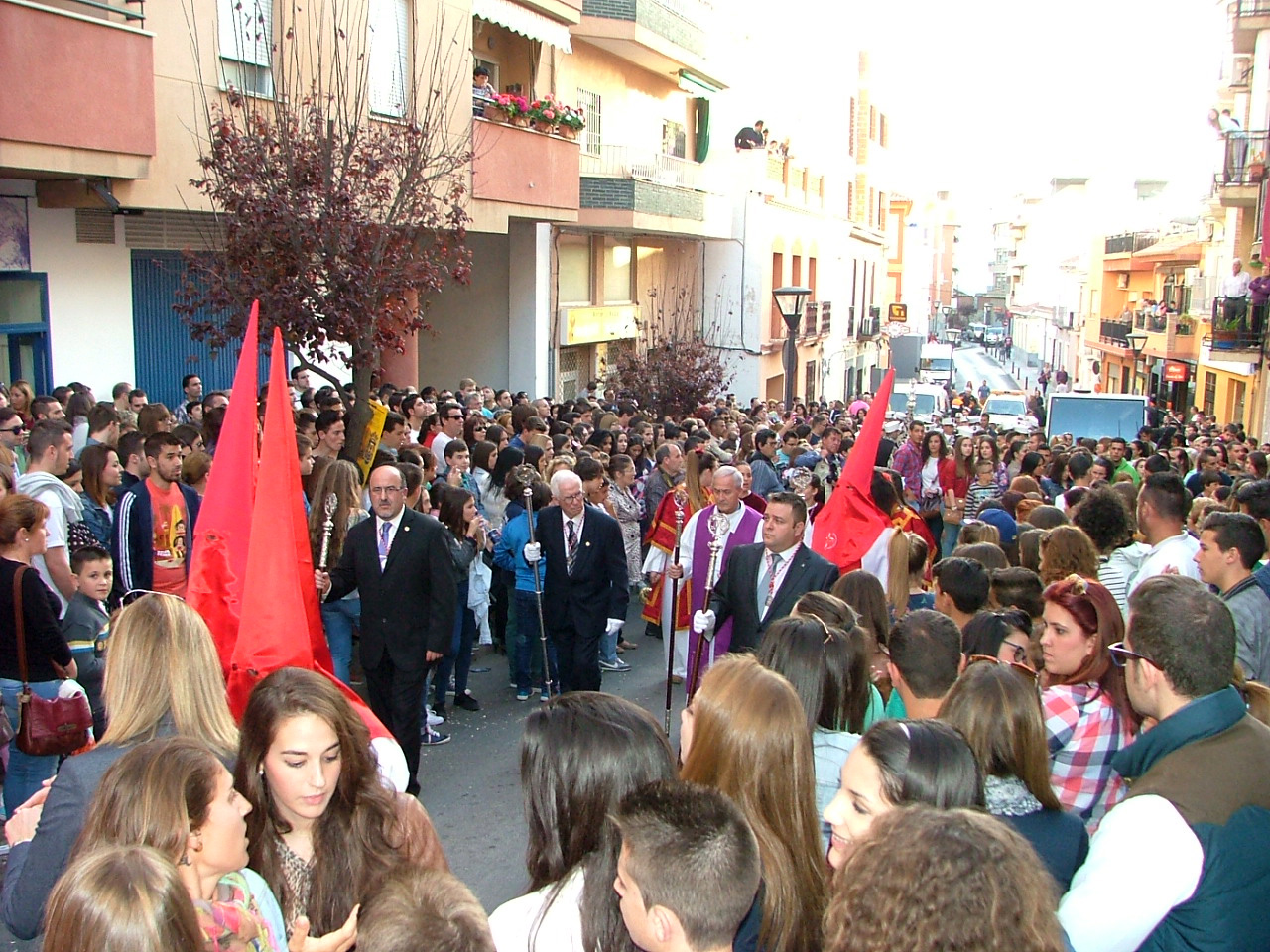 Fiel a su cita y con una sonora entrada triunfal de la banda de música que acompaña al paso de misterio, a las 20:00 hrs. de la tarde se verificó la salida procesional de la cofradía de La Oración en el Huerto de los Olivos desde la calle de las Cañas, sede de su casa hermandad y lugar en el que se había desplegado una enorme marea humana deseosa de contemplar el segundo cortejo oficial de la semana santa motrileña. Siguiendo la tradición el actual hermano mayor, Francisco Fernández Jódar, ha marchado acompañado del cofrade Antonio Ruiz Blanco para golpear hasta tres veces en el portón de su hermandad y permitir con ello la partida de la procesión. Antonio Ruiz ha sido, pues, un invitado de excepción en su propia casa y su designación para este cometido viene marcada por haber sido nombrado pregonero oficial de la semana santa del año 2014. Con el cortejo ya en la calle y tras los complejos movimientos de salida de los pasos se ha dispuesto el recorrido procesional que la junta de gobierno ha fijado para este año y que ha hecho trascurrir por la calle Cañas, Rambla del Manjón, Señor de Junes, Ruiz, Plaza de San Agustín, Zapateros, Jardinillos, Plaza Díaz Moreu, Gaspar Esteva, Cruz Verde, Ventura, Marqués de Vistabella, Plaza Burgos, Canalejas, Curucho, Plaza Sol, Tahona, Gloria, Cañas y de aquí el encierro en su casa Hermandad.