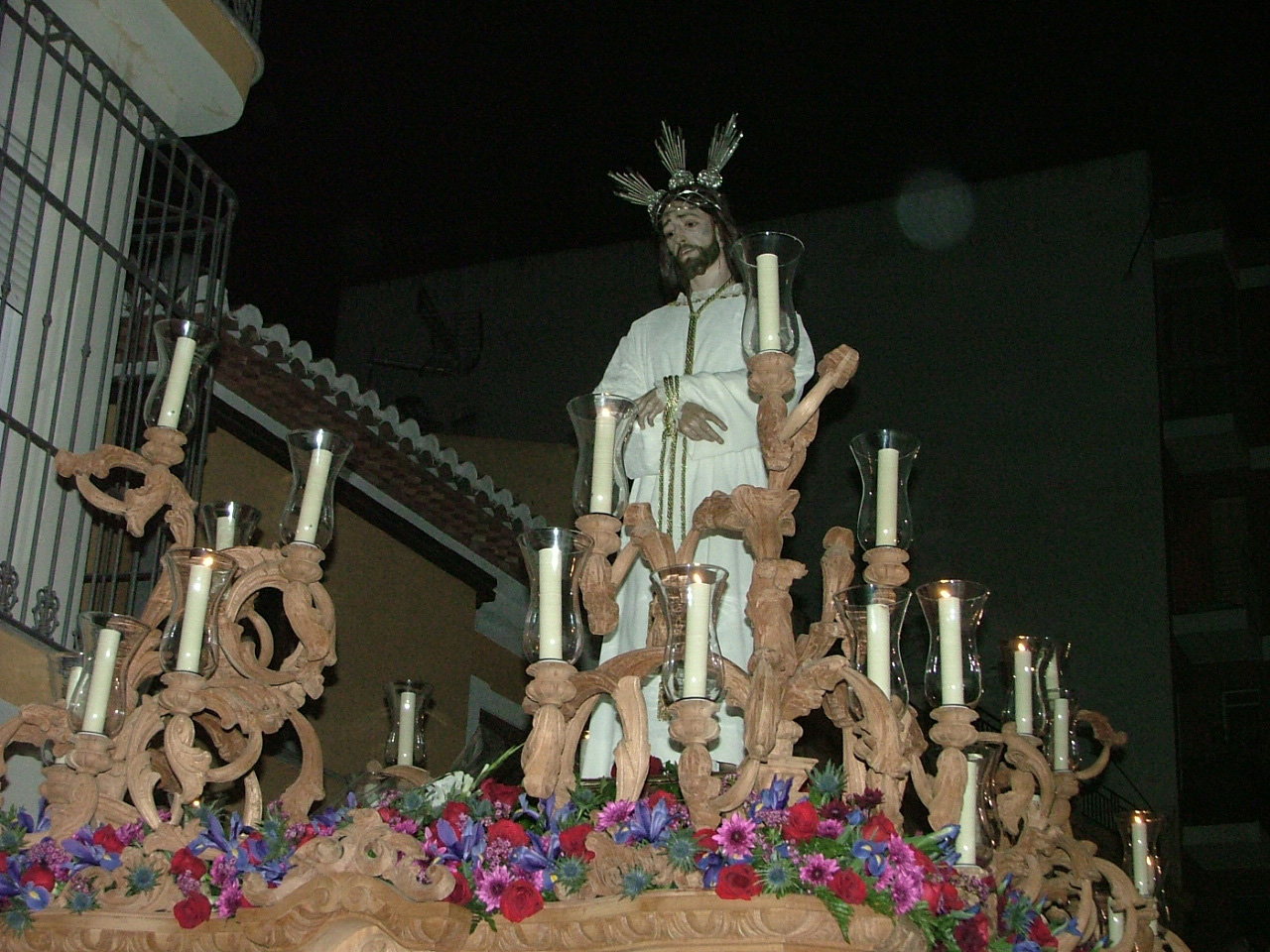 Fiel a su cita anual, la «Sentencia de Poncio Pilatos» ha sido dictada desde el balcón de la casa parroquial por el cofrade Manuel Jiménez Esparrell, mientras todo el público apostado en la plaza de España guardaba absoluto silencio. A continuación el siempre sugerente y atractivo canto de la saeta ha tenido su protagonista en la figura de Sandra Cabrera, finalista del concurso «Se llama copla», quien ha obsequiado a los titulares de la cofradía con sendos cantos que han provocado los primeros aplausos de la tarde. Posteriormente, al paso de tribuna oficial, ha vuelto a repetir actuación a la vez que una intensa lluvia de pétalos de flor ha rociado el paso de palio.