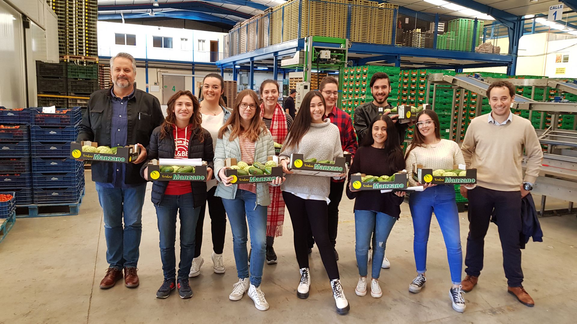 Dentro de las actividades formativas que desarrolla Frutas Manzano se encuentran las visitas guiadas que celebra la empresa esporádicamente. En esta ocasión, los alumnos de FP en Gestión administrativa del IES Antigua Sexi de Almuñécar se han acercado hasta la sede de Salobreña para conocer de primera mano el trabajo que desempeña la marca de puertas para adentro.