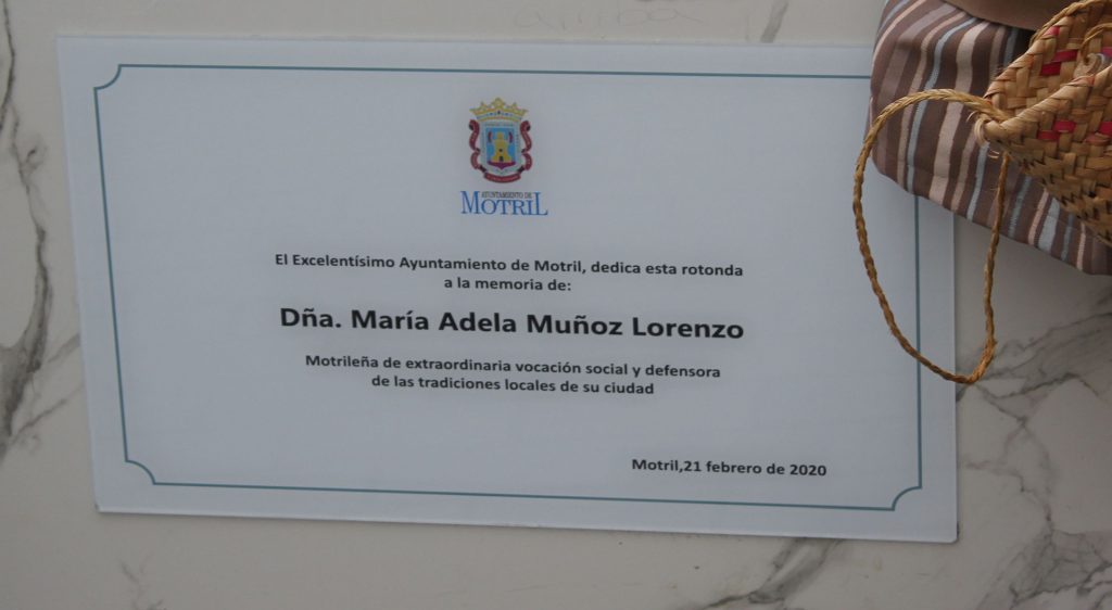 Flor Almón ha destacado que la rotonda de La Mondera queda para siempre ligada a la memoria de María Adela Muñoz Lorenzo, “una mujer luchadora, comprometida con Motril, con su cultura, sus tradiciones, una persona solidaria, muy activa en la lucha por la igualdad y a la que echamos todos mucho de menos”.