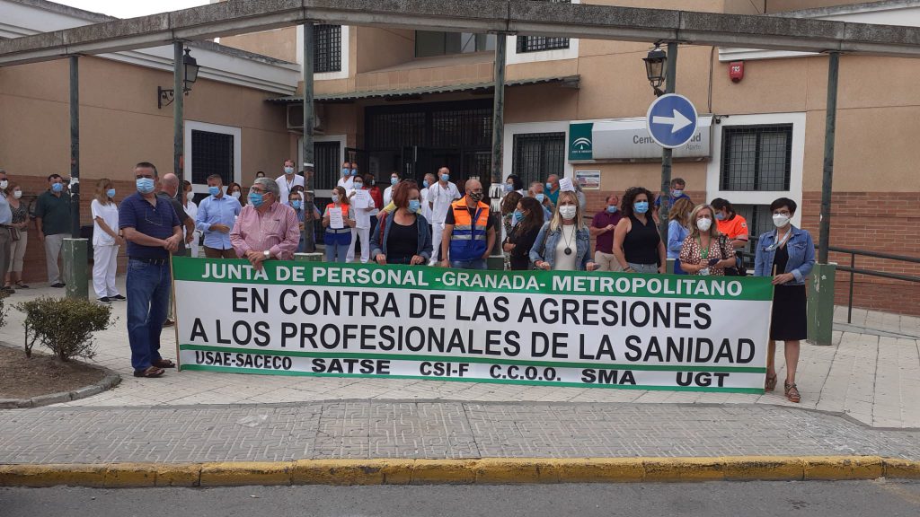 Profesionales, sindicatos y la gerencia del distrito Granada-Metropolitano se han concentrado en las puertas del centro de salud de Atarfe para rechazar la agresión sufrida por una médica de familia de dicho centro, el pasado viernes 18 de septiembre