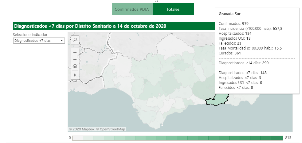 Datos acumulados en la provincia de Granada: positivos 12.723; 367 fallecidos; la cifra de curados se eleva a 4.367; con 1.714 ingresos en hospital; con 163 en UCI desde el inicio de la pandemia.