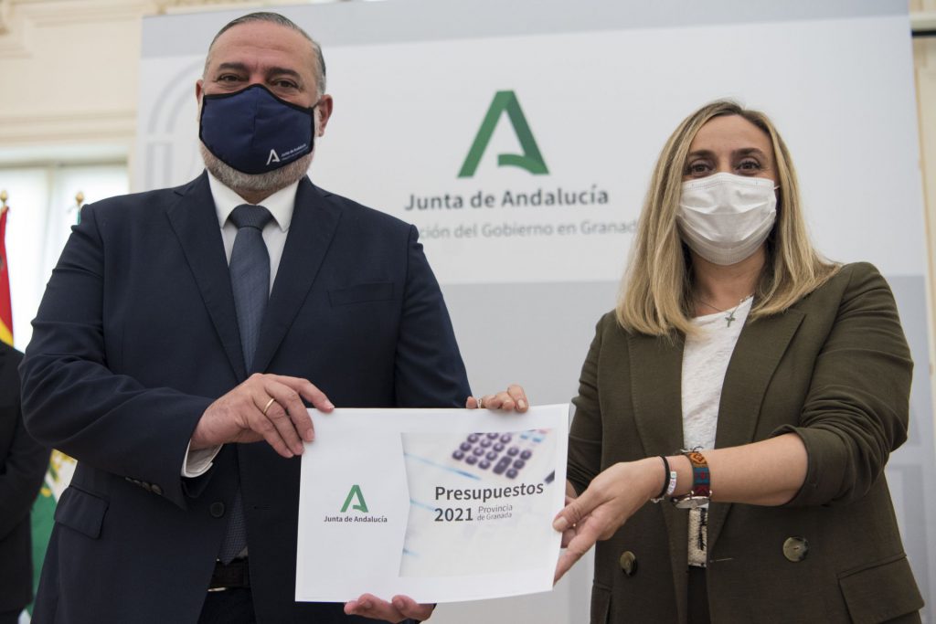 La consejera de Fomento, Infraestructuras y Ordenación del Territorio, Marifrán Carazo, y el delegado de la Junta en Granada, Pablo García, han desgranado hoy las partidas del Presupuesto para 2021 del Gobierno andaluz para la provincia granadina. Durante la presentación de las cuentas, la consejera ha anunciado que la Agencia de Obra Pública de la Junta va a licitar el proyecto constructivo para la ampliación del Metro de Granada hacia el Norte y el Sur porque es urgente contar con esos proyectos para aprovechar el Fondo de Recuperación de la UE.