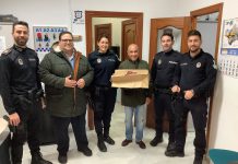 Francisco Robles y Rafael Caballero saludaron al personal de guardia y le hicieron entrega de un regalo para celebrar la entrada de 2020