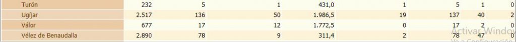 Tabla estadística al completo de los municipios del Área Granada Sur: