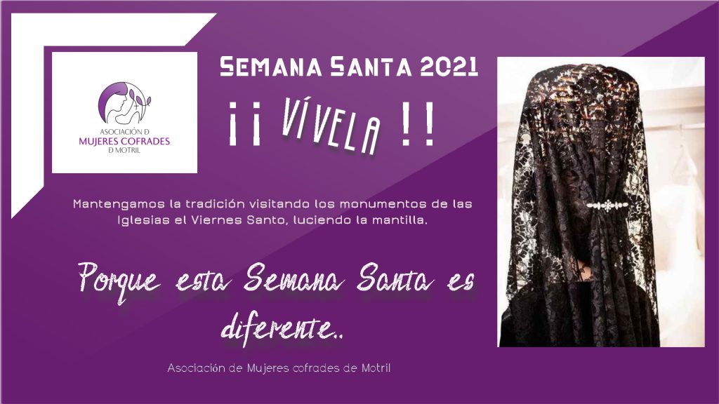 La asociación de mujeres cofrades, modestamente, se suma a la participación activa en esta Semana Santa del 2021 con el ánimo de engrandecer y hacer visible aún más si cabe la Semana Mayor motrileña.