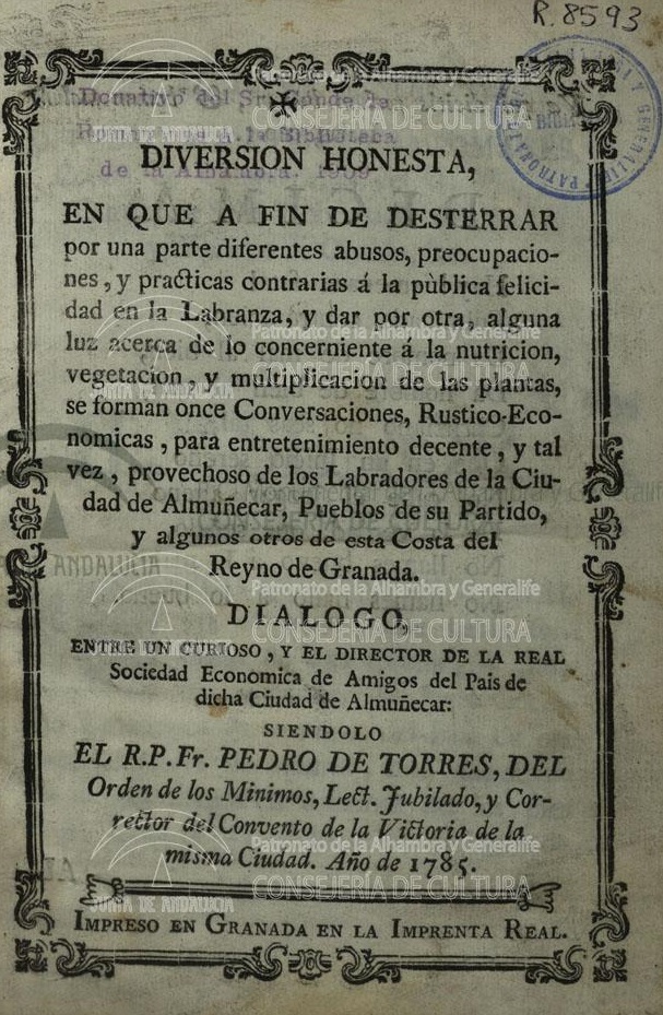 Motril también tuvo su Sociedad Económica, denominada de “Amantes de la Patria”, que había sido creada a instancias de fray Pedro de Torres, lector del convento de la Victoria de nuestra ciudad y gran estudioso, como lo atestiguan sus obras, de los temas de economía agraria y aprobada por Carlos III en 1786.
