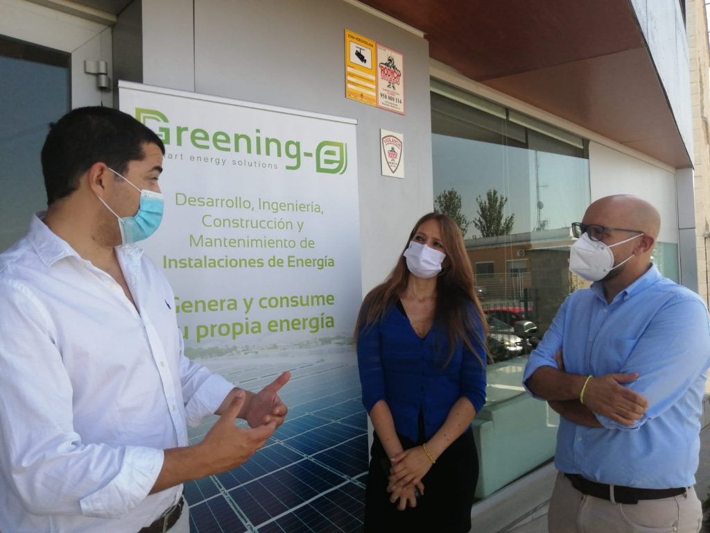 La delegada de Empleo visita la firma Greening-e, cuyas instalaciones fotovoltaicas de autoconsumo ya han sido probadas por marcas automovilísticas de nivel internacional. Implantados en España, Marruecos y México preparan su salto a EEUU y Tailandia