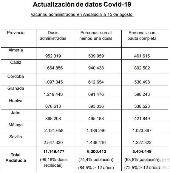 Los últimos datos sobre el proceso de vacunación indican que en la provincia de Granada 598.250 ciudadanos han recibido las dosis de la vacuna contra la Covid-19.