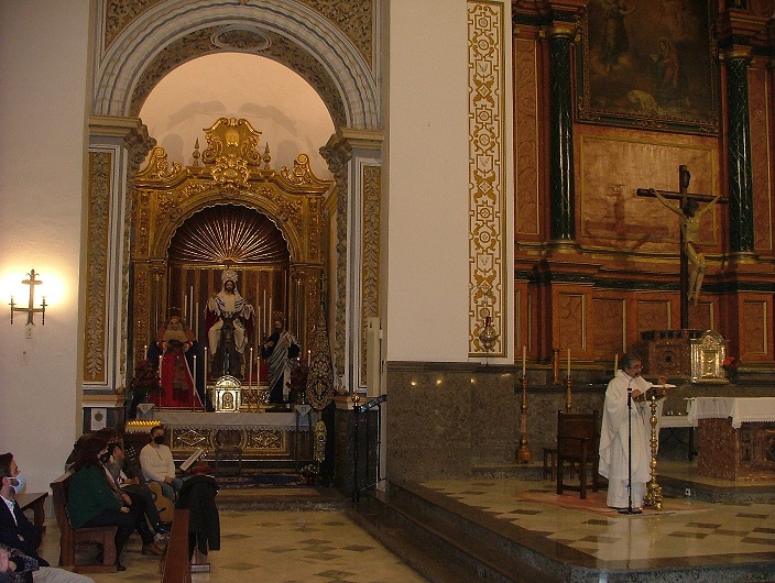 El sábado, 19 de marzo, último día del triduo, se ha celebrado la eucaristía con similar acogida de fieles, ceremonial en cuya homilía el párroco ha querido incidir en el la significación de la primera lectura en la que Moisés sube al monte Sinaí y contempla las zarzas ardiendo. La escena guarda un gran simbolismo para el cristiano, pues se identifica con el fuego que calienta, que ahuyenta animales y que facilita la preparación de alimentos. Como bien ha indicado D. José Albaladejo, ese fuego que no se consume es Dios, y es quien ahuyenta el mal de todos nosotros y el que nos anima como Hijos suyos. Por tanto, la enseñanza de la iglesia es que no se trata de un Dios lejano, muy al contrario, muy cercano, un Dios que escucha y auxilia y la manera de perpetuar esa permanencia es darnos a su propio Hijo que es la grandeza de Cristo.
