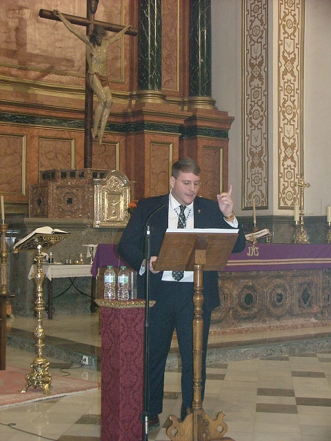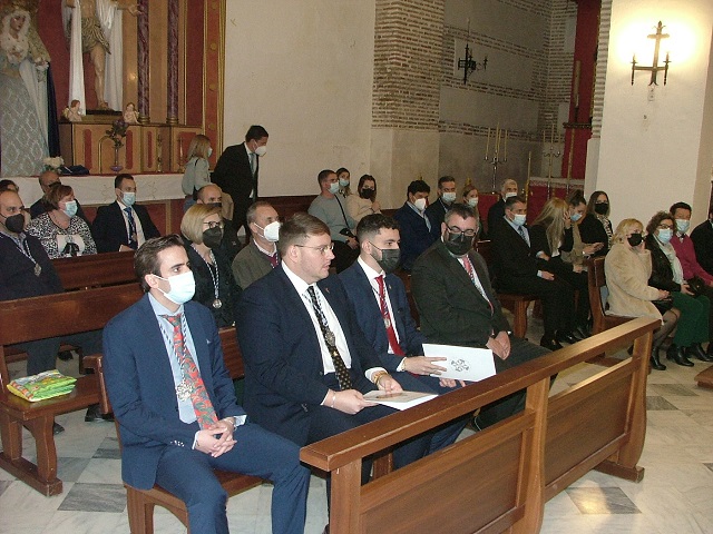El viernes, 18 de marzo, la celebración eucarística de la tarde evidenciaba una extraordinaria acogida en todo el recinto eclesial. En verdad ha habido representaciones de la práctica totalidad de corporaciones penitenciales de la ciudad y la propia de la Agrupación de Hermandades y Cofradías, que ha situado en lugares preferenciales a dos de sus vocales, Joaquín Bustos y Vicente Tamayo. Al margen de ello han estado presentes personalidades de la vida local, aunque lo han hecho como simples feligreses, en este caso la alcaldesa de la ciudad, Luisa Mª García Chamorro, y la concejala Inmaculada Torres. Particular atención ha merecido la extensa representación de la hermandad del Gran Poder, corporación con la que “La Borriquita” está hermanada y que han representado de modo oficial dos de sus antiguos hermanos mayores, Juan Manuel Jiménez Rufino y Juan Vázquez. La santa misa ha sido oficiada por su consiliario, D. José Albaladejo, que en su homilía ha recordado el pasaje de la huida de Egipto de la Virgen María, San José y el Niño para salvarle de la muerte que había ordenado Herodes. El párroco ha querido parangonar este hecho histórico con la triste realidad que están padeciendo los ciudadanos de Ucrania en un éxodo sin precedentes en la historia de la humanidad por causa de la guerra de aniquilación que ha iniciado Rusia. Todo el ceremonial eucarístico ha estado amenizado por el coro “Nuestra Señora de las Angustias, grupo que para concluir su intervención ha interpretado magistralmente el himno a la Virgen del Rosario que ha sido adaptado a las voces del coro. Finalizada la santa misa, la junta de gobierno de la hermandad de la Borriquita ha procedido a la bendición e imposición de medallas a los nuevos hermanos, niños en su gran mayoría, que están abocados a renovar y dar un impulso generacional a los componentes de esta señera corporación del Domingo de Ramos. Todavía ha quedado reglado un acto más en la propia iglesia Mayor, aunque fuera del protocolo regido por la hermandad, ya que se ha podido asistir a un espléndido concierto de marchas procesionales que ha ofrecido la orquesta del Conservatorio profesional de Música “Antonio Lorenzo”.