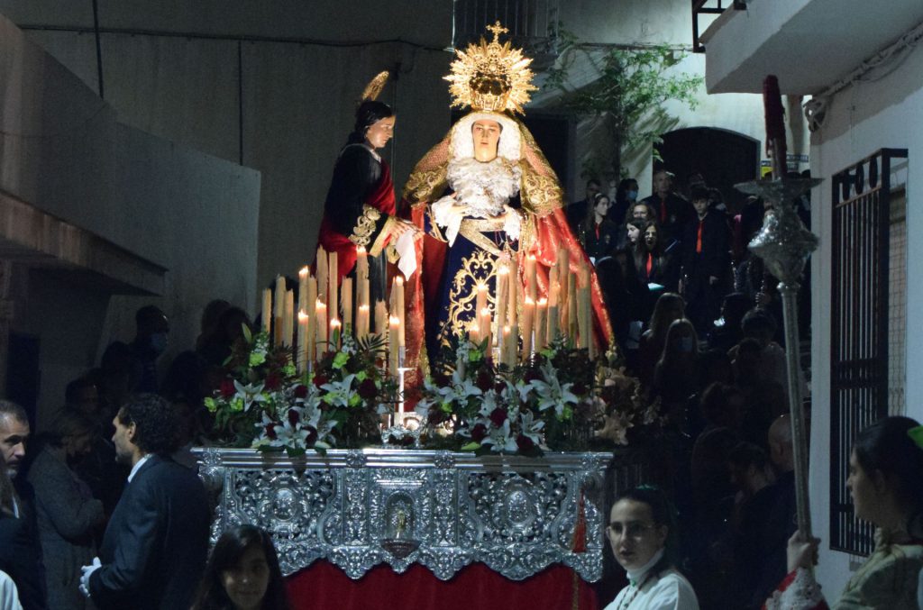 Sentida, pues procesión de fe, la verificada en la villa en la noche del jueves santo de la mano de la corporación penitencial de María Santísima de las Penas y San Juan Evangelista, que para los anales queda, tras dos años de suspensión obligada por causa de la pandemia. Estreno brillante o, más bien reestreno, que fieles devotos, vecinos y visitantes guardan ya en su memoria en este año inaugural de 2022 que marca la nueva etapa de los desfiles procesionales en la villa.
