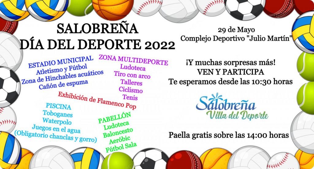 Salobreña celebra este fin de semana el “Día del deporte” para clausurar las Escuelas Deportivas de todas y cada una de las especialidades. Desde las 10:30 horas y mediante juegos y actividades divertidas, como cañón de espuma, hinchables, exhibiciones de aerobic y flamencopop, tiro con arco, ludoteca, manualidades, etc…, se pone punto y final a esta temporada 2021-2022.