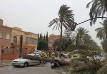 Tres heridos, dos de ellos graves, al caer una palmera sobre un coche y...
