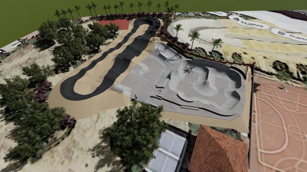 Las nuevas pistas se construirán con hormigón armado de ejecución in situ, siendo los acabados en asfalto para la pista de fun track y enlucido manual para la pista de skate, que formará diferentes tipos de planos inclinados y rampas que permitan la realización de trucos y saltos a diferentes alturas.