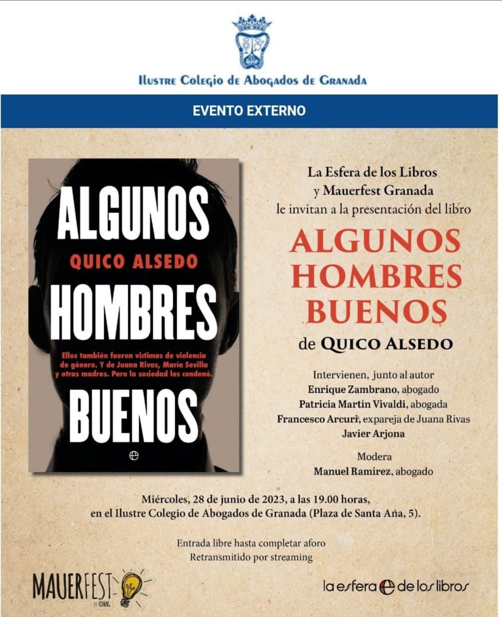 En relación al acto público de presentación del libro «Algunos hombres Buenos», de Quico Alsedo, convocado en el Ilustre Colegio de Abogados de Granada para el día 28 de junio (cuyo cartel se adjunta), queremos manifestar nuestra indignación, dado que: