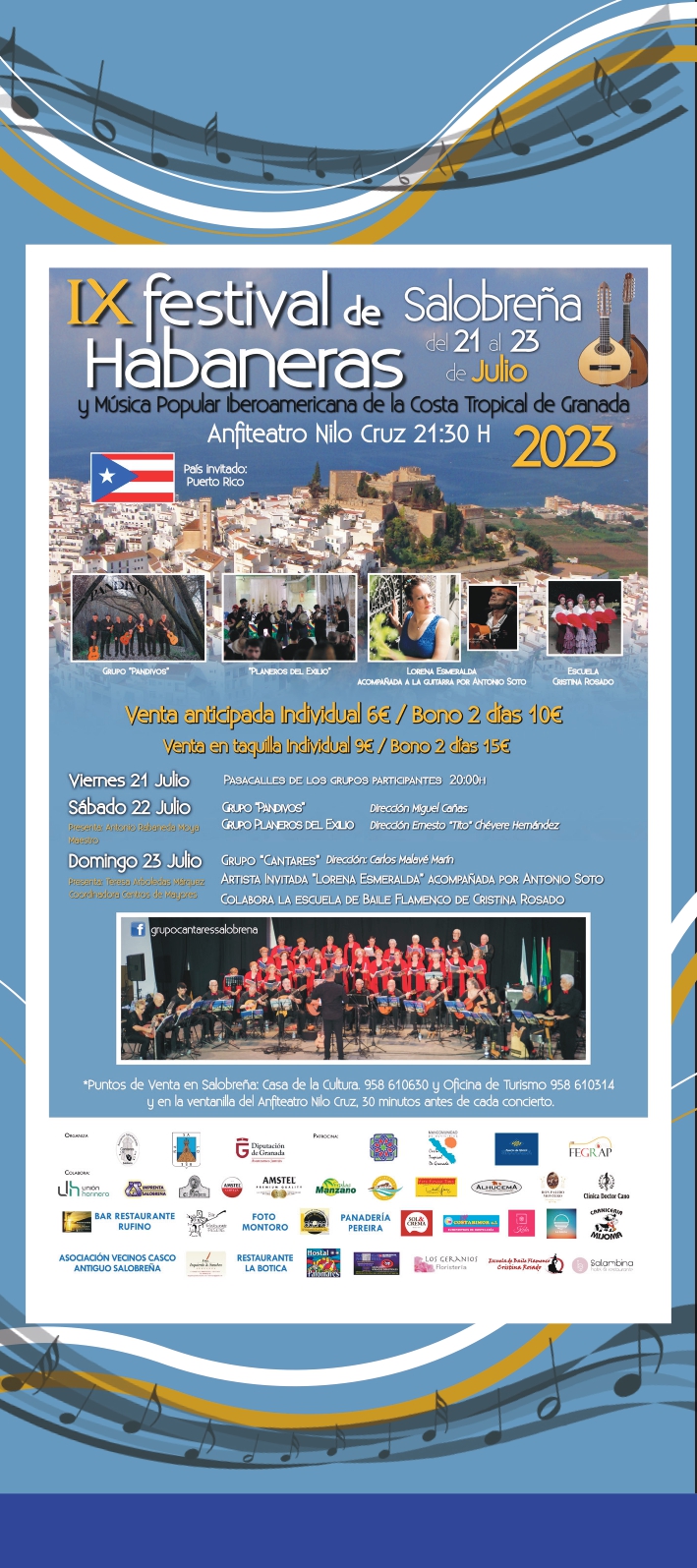 El sábado 22 actuarán los grupos “Pandivos” y “Pleneros del Exilio” representando al país invitado. Como presentador de esta jornada estará Antonio Rabanedas