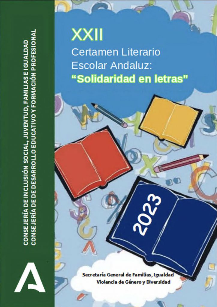 La Junta de Andalucía, a través de la Consejería de Inclusión Social, Juventud, Familias e Igualdad, ha abierto el plazo de presentación de candidaturas para la vigésimo segunda edición del Certamen Literario Escolar Andaluz en materia de voluntariado denominado ‘Solidaridad en Letras’ 2023 (BOJA número 138, de 20 de julio). El plazo de presentación de trabajos finaliza el día 3 de noviembre.
