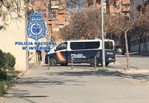 Agentes de la Policía Nacional liberan a un hombre momentos después de ser introducido...