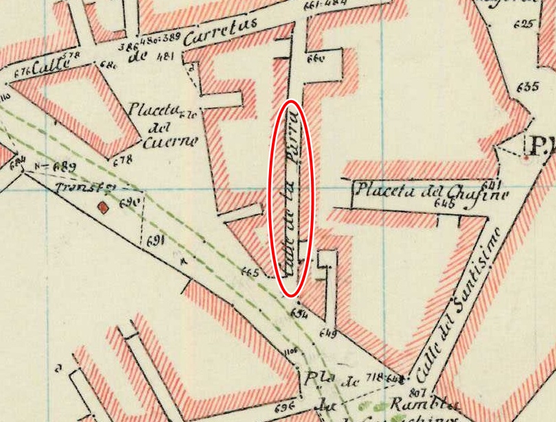 Era suya la casa en la que vivía en la calle de la Parra, lindando con los anteriores aposentos, que compró al albañil Francisco de Cuevas en 1.000 reales.