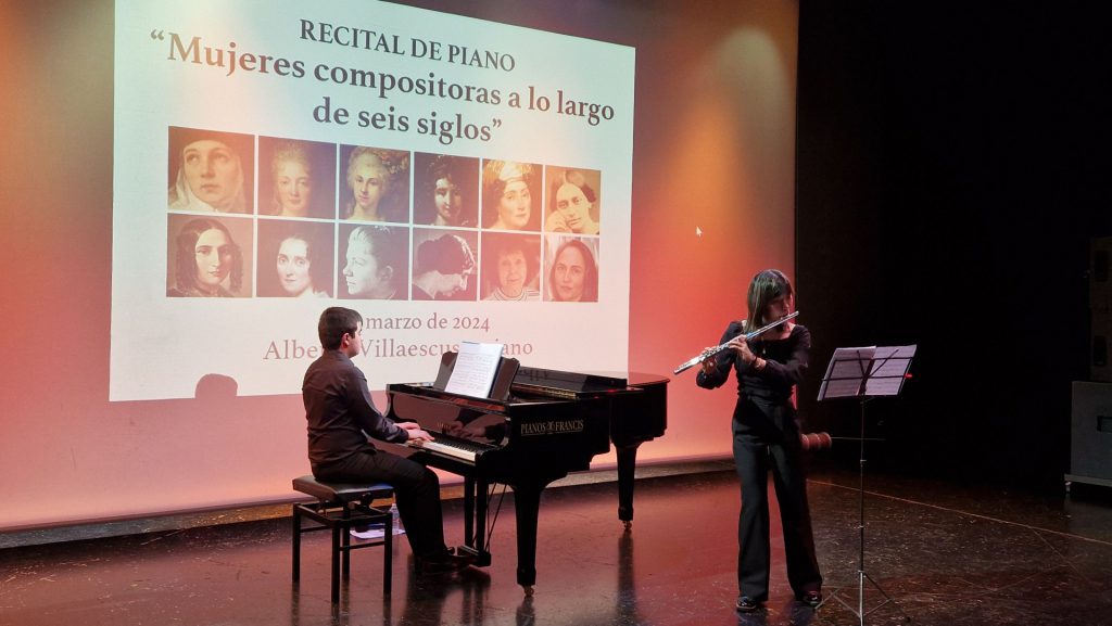 El acto comenzó con un recital de piano de la mano del joven Alberto Villaescusa Martín, que deleitó al público con un repertorio de obras de ‘Mujeres compositoras a lo largo de seis siglos’