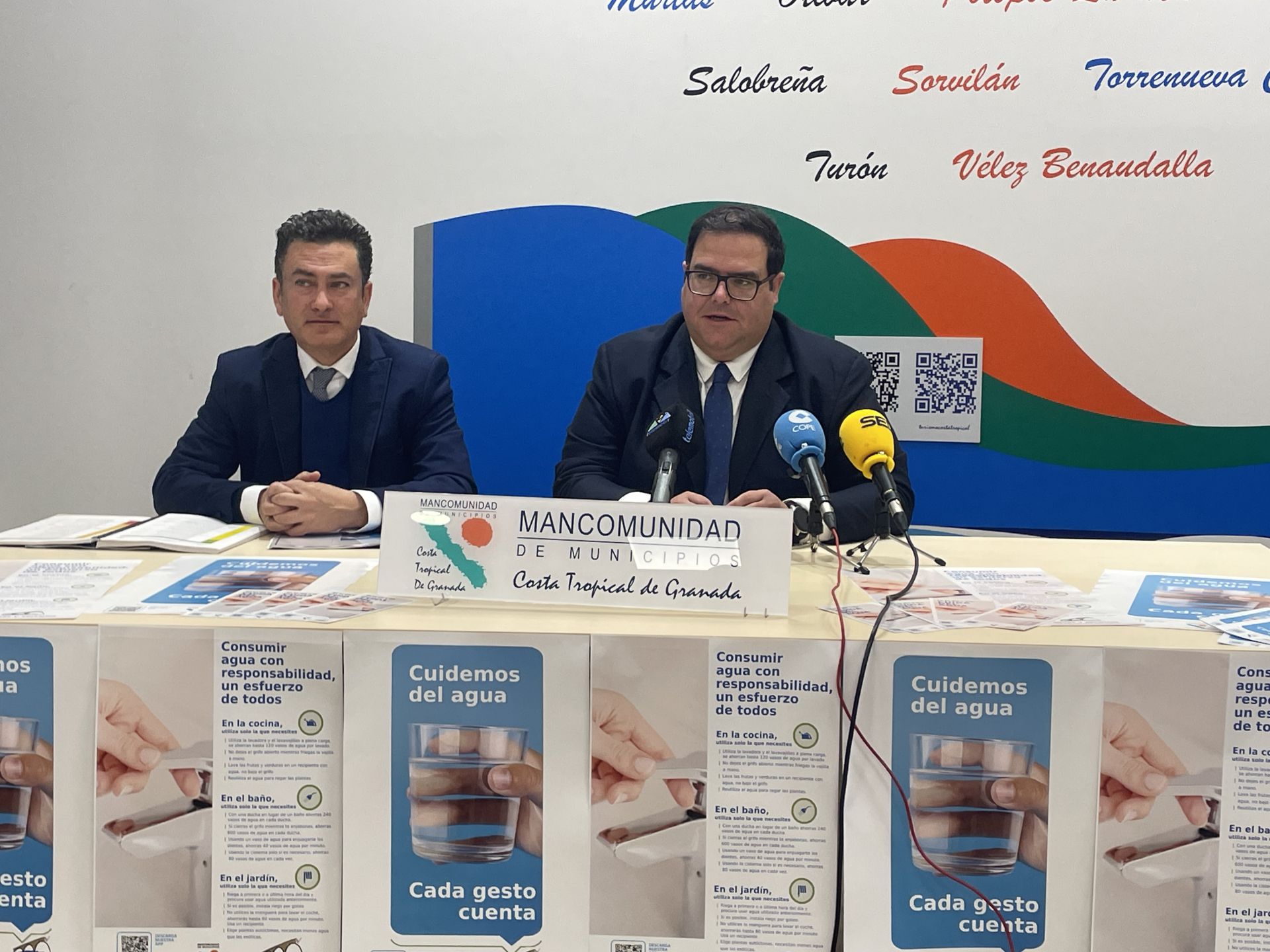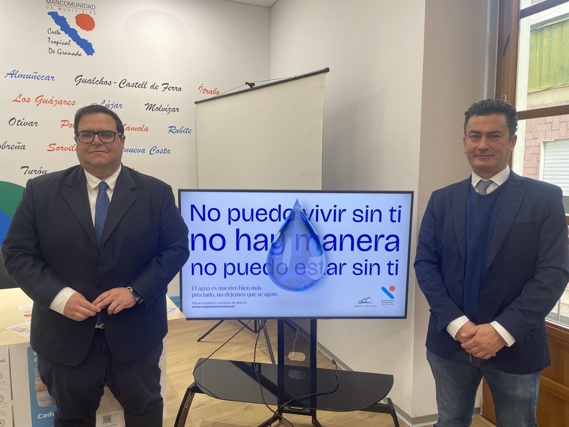 El presidente de la Mancomunidad de Municipios de la Costa Tropical, Rafael Caballero, y el gerente de la empresa concesionaria del ciclo integral del agua, Aguas y Servicios, Alejandro Jurado, han presentado la campaña informativa y publicitaria con la que ambas instituciones pretenden concienciar a la población sobre un uso responsable del agua, ante la situación de sequía a la que se enfrenta el litoral granadino.