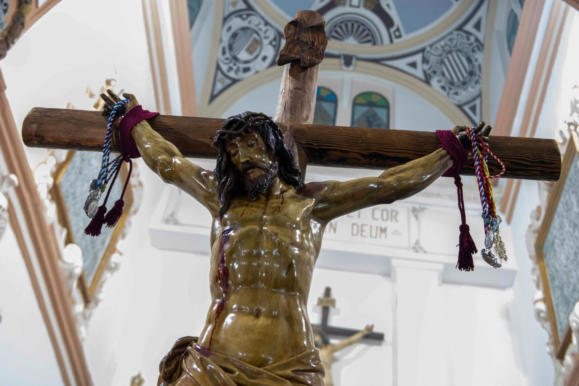 Inmediatamente se procedía a sacar al Cristo a la calle portado por su cuerpo de hermanos portadores, mientras los fieles presentes, en número algo menor que otros años por las inclemencias del tiempo, guardaban absoluto silencio.