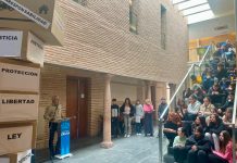 Ante la persistencia de las precipitaciones sobre la ciudad, la junta de gobierno resolvía un último acuerdo por el que quedaba suspendida definitivamente la estación de penitencia. La consternación era grande, y la desolación en los fieles apostados en la plaza de San Agustín se hacía manifiesta en sus caras, sin olvidar que todos los paraguas permanecían abiertos. Mientras, en el interior, Yolanda Rodríguez, la hermana mayor, se dirigía desde el ambón a los hermanos para trasladarles el momento de angustia que les afligía. Según afirmaba, el momento era duro y difícil, pues tras un año de trabajo habían tomado la decisión de suspender la procesión. Avanzó que “era un riesgo salir a la calle por las propias personas que integran el cortejo, en el que se integran numerosos niños y, asimismo, preservar el patrimonio de la cofradía”. No es fácil, dijo, y por ello “este miércoles santo se ha de celebrar de forma distinta, de forma no menos bonita y satisfactoria para todos”. Asimismo avanzó que minutos más tarde se iba a realizar el rezo del santo vía crucis en la propia iglesia y con la gente que esta fuera y que se merece todo un respeto. En ese mismo momento anunciaban que se iban a abrir las puertas de la iglesia y que la imagen del Santísimo Cristo de la Salud saldría hasta el espacio cerrado por las cadenas donde se le cantaría una saeta como todos los años. Muy gratificadoras fueron sus palabras cuando afirmó que este día, “por las circunstancias, nos está regalando vida, sin agua no hay vida y la tierra no funciona sin agua, algo que estamos pidiendo desde hace mucho tiempo”.