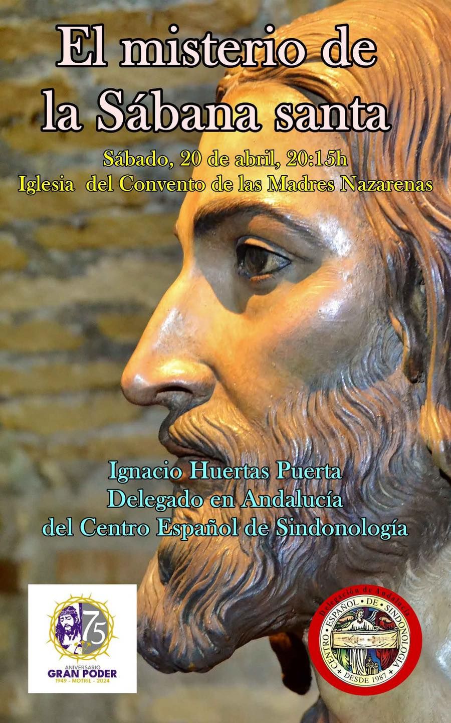 El próximo sábado 20 de abril, a las 20:15 horas, tendrá lugar en la Iglesia de la Visitación del Convento de Nuestras R.R.M.M. Nazarenas -calle Monjas de Motril-, la conferencia “El Misterio de la Sábana Santa”, enmarcada en los actos del 75 Aniversario de la bendición de Nuestro Padre Jesús del Gran Poder.