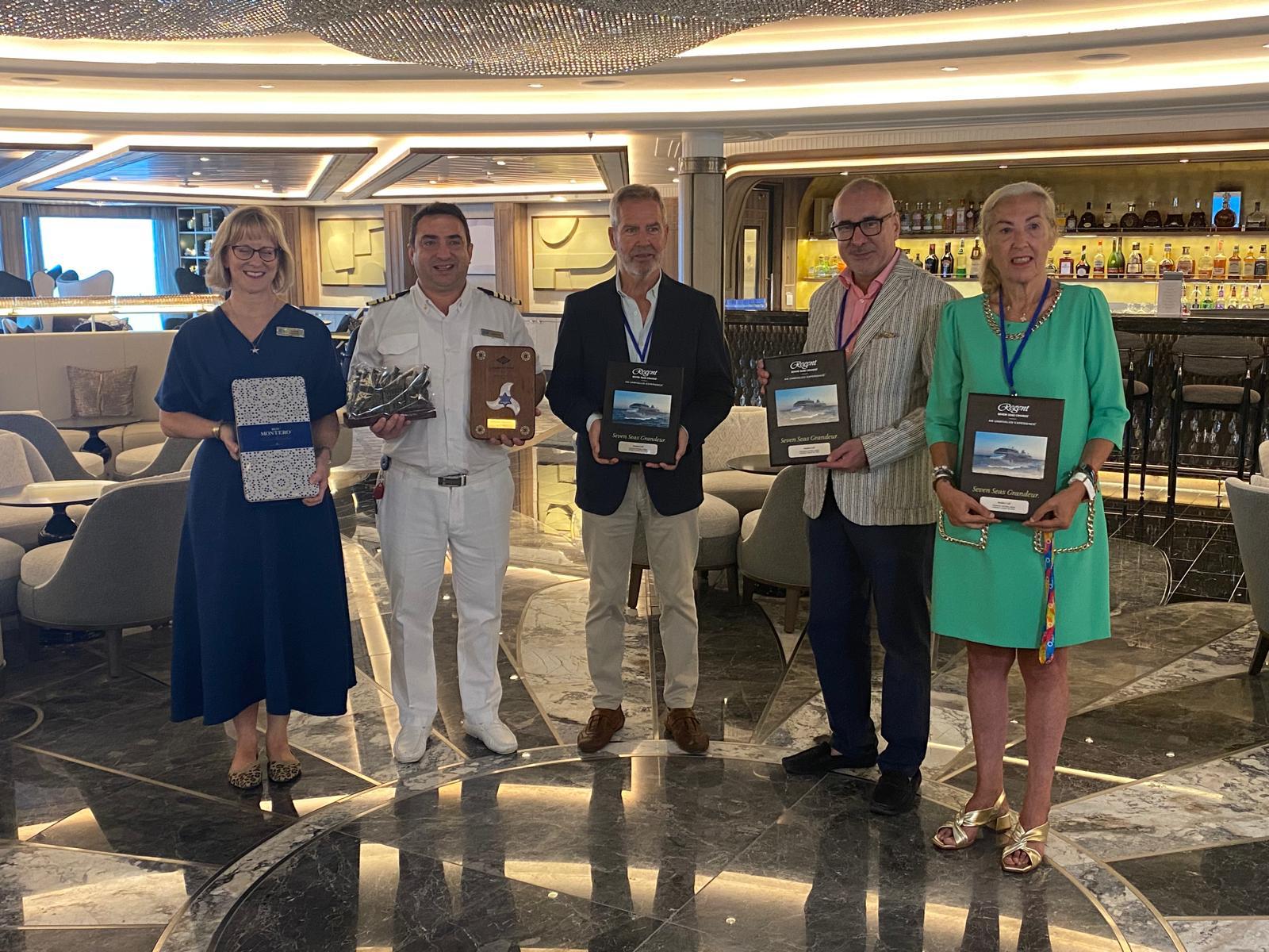 Sendos cruceros de lujo de la compañía naviera Regent Seven Seas Cruises y consignados por el agente López Guillén han hecho escala en el Puerto de Motril con 1.300 pasajeros y similar número de tripulantes. Se trata del Seven Seas Grandeur, que ha visitado por primera vez la dársena granadina. Con tal motivo, el presidente del puerto, José García Fuentes, la teniente de alcalde de Promoción Turística de Motril, Mari Ángeles Escámez Rodríguez, y el director del Patronato de la Alhambra y el Generalife, Rodrigo Ruiz-Jiménez Carrera, le han entregado al capitán una metopa y varios objetos representativos del destino. Junto al Grandeur, ha hecho escala el Seven Seas Mariner, habitual las últimas temporadas en Motril. Con prestaciones propias del segmento luxury, los precios del pasaje en ambos cruceros son muy similares llegando a oscilar entre los 4.000 y 29.000 euros.
