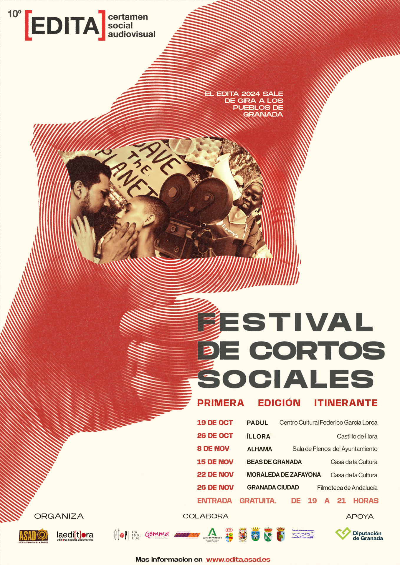 ASAD y Laeditora Social Audiovisual vuelven a organizar el Festival de Cortometrajes Sociales EDITA, un evento que apuesta por la visibilización de cortometrajes que denuncian las injusticias sociales y desigualdades, a pesar del transcurso del tiempo. En su décima edición, el festival se reinventa con una propuesta innovadora y transformadora: por primera vez, se convierte en un evento itinerante, extendiéndose por municipios de los diferentes pueblos de Granada.